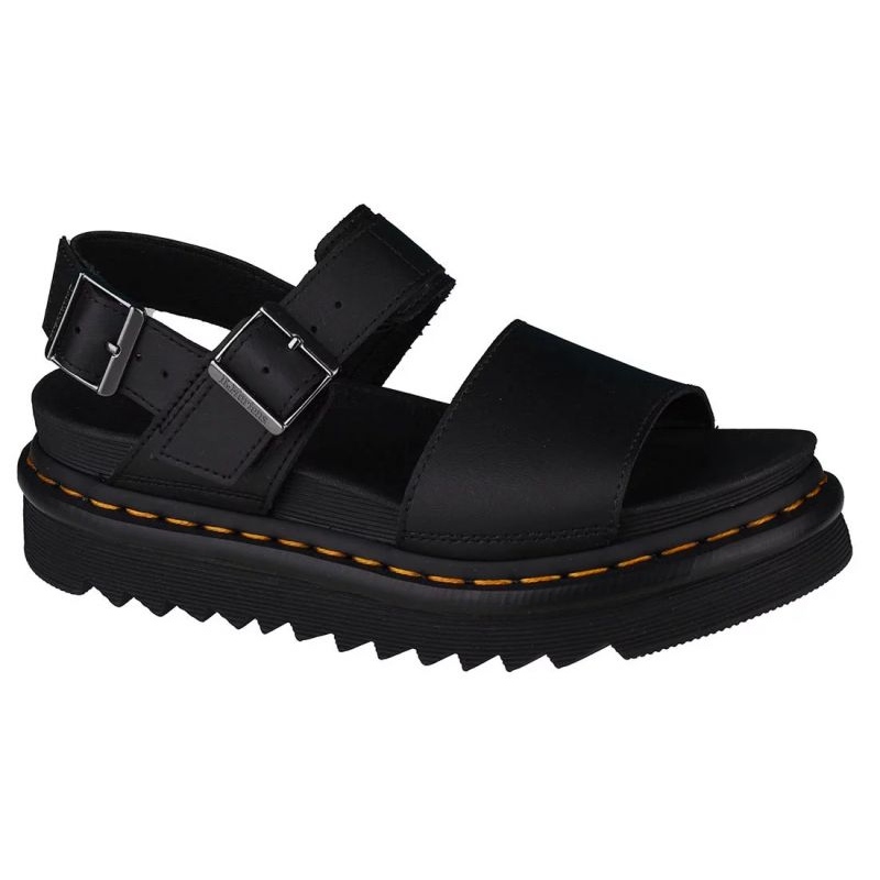 Descubra uma nova dimensão de conforto e estilo com as sandálias Dr. Martens Voss W na clássica cor preta. Estas sandálias exclusivas, confeccionadas em couro natural de alta qualidade, combinam elegância e funcionalidade no dia a dia. O fecho de fivela com pino permite um ajuste rápido e confortável, e a sola estável e em relevo proporciona excelente aderência.