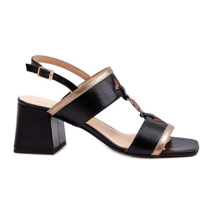 Detalhes: Sandálias elegantes de couro em bloco Laura Messi 2768 pretas preto