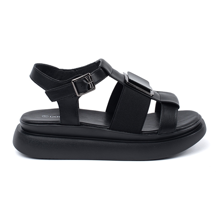 Detalhes: Goodin Sandálias elegantes de couro preto na plataforma
