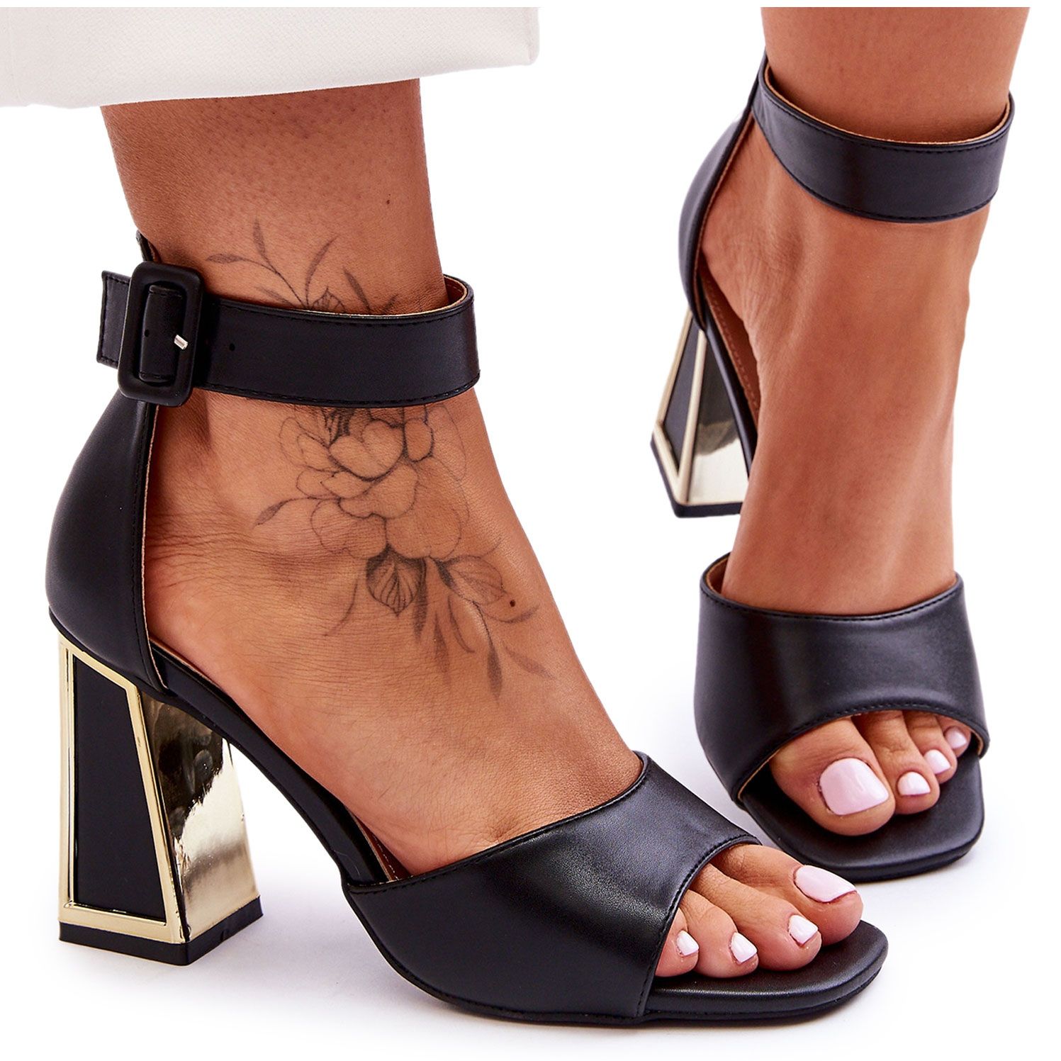 Black Sorel é uma combinação única de elegância e funcionalidade. O delicado fecho no tornozelo com tira ajustável com fivela não só fica lindo, mas também permite que as sandálias se ajustem perfeitamente ao pé. Além disso, o salto em forma de poste decorado com 9 cm de altura confere um caráter único ao calçado e afina sutilmente a perna, o que é uma vantagem importante para todo amante da elegância.