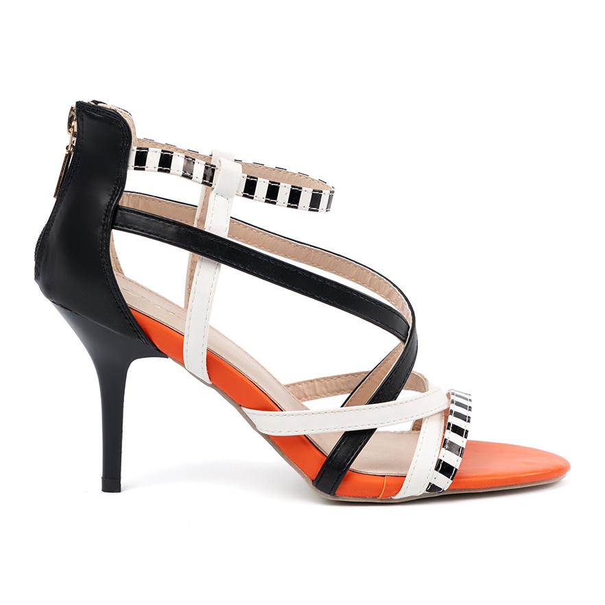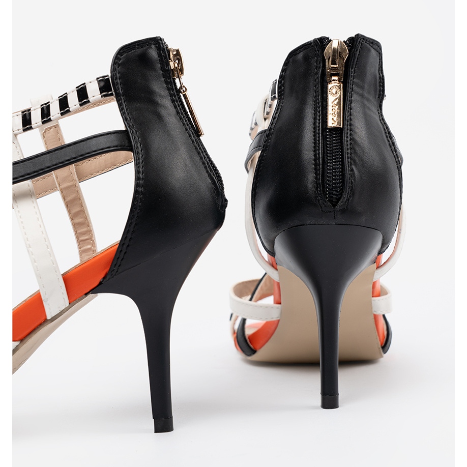 Conheça as sandálias no salto alto Shelvt - a escolha perfeita para todas as mulheres da moda que querem enfatizar seu estilo e elegância em ocasiões especiais. Essas sandálias multicoloridas se diferenciam por um design único com tiras brancas e brancas que lhes dão caráter e atraem atenção.