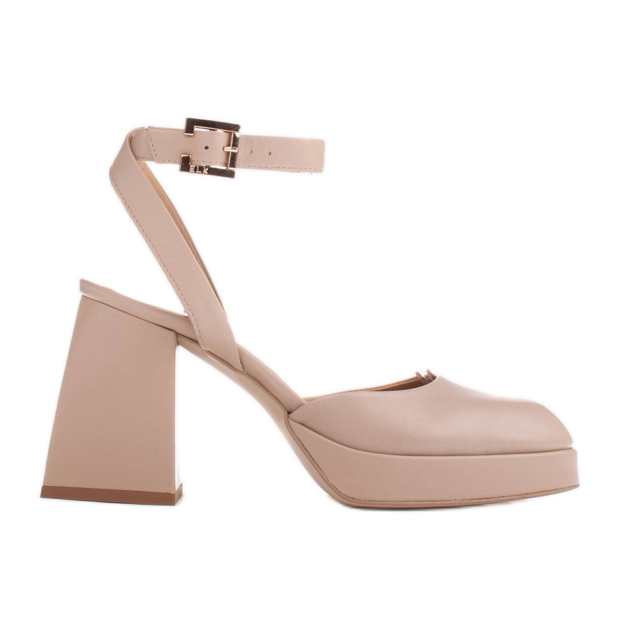 Detalhes: Marco Shoes Sandálias em uma plataforma de reforço bege