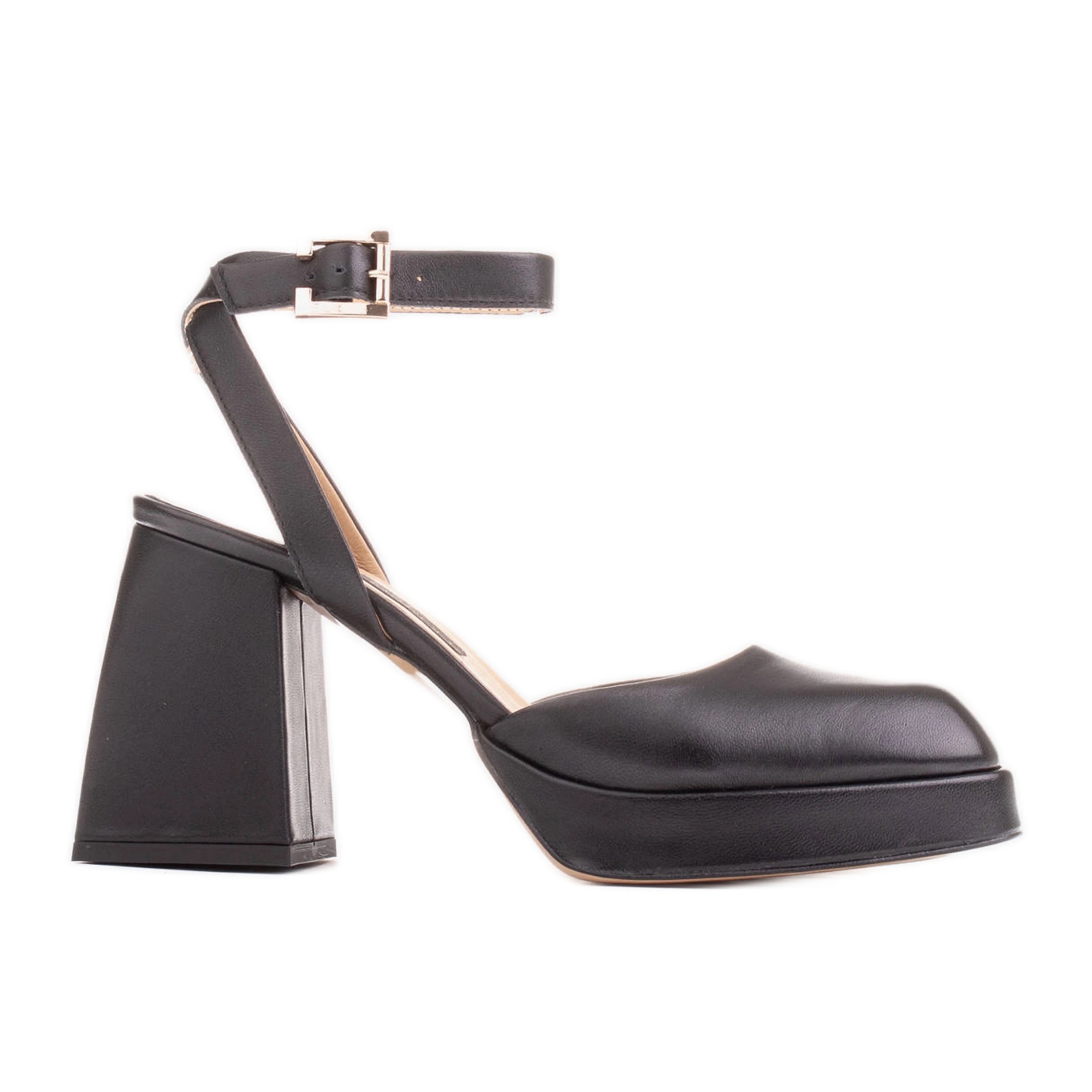 Marco Shoes - Sandálias na plataforma (preto) da coleção Keeshoes é uma combinação de elegância e conforto clássicos. Feito de couro natural de grãos, eles funcionarão diariamente e para resultados mais formais.