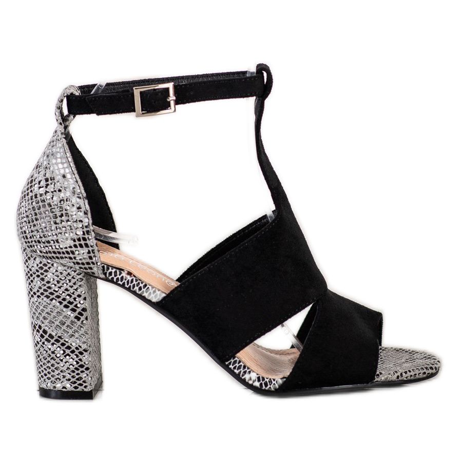 Apresentamos as sandálias fechadas Sergio Leone na elegante cor preta, que certamente chamarão a atenção pela sua estética única e conforto de uso. Estes sapatos clássicos com salto de 8 cm combinam perfeitamente estilo com conforto, o que os torna a escolha ideal para saídas à noite e vários tipos de celebrações.