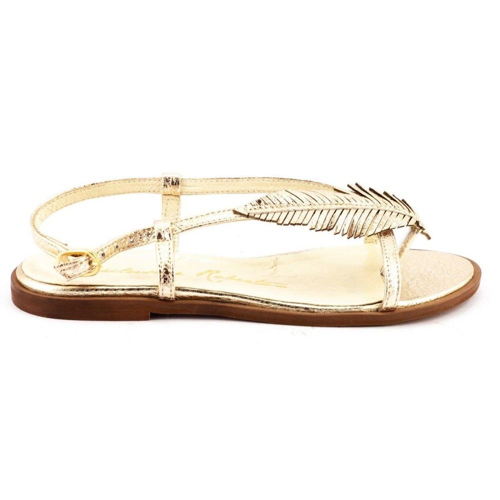 Sandálias femininas elegantes Modelo 621 em uma sombra dourada é uma combinação de clássicos e conforto, perfeita para os dias de verão. Feito inteiramente de couro natural - tanto a parte superior quanto a inserção - garantem o ajuste, a durabilidade e o conforto do uso.