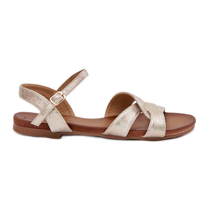 Detalhes: S.Barski Sandálias femininas brilhantes planas S. Barski KV51-022 Gold dourado