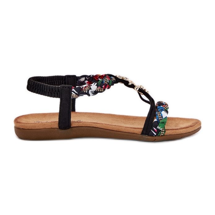 eVento EVento Sandálias femininas com alfinetes e listras trançadas pretas preto