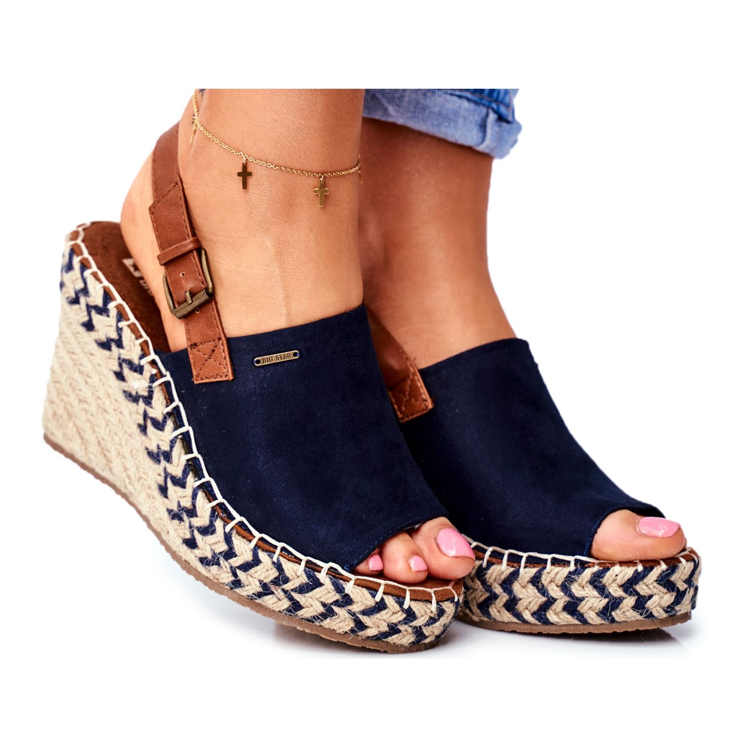 Descubra estilo e conforto únicos com sandálias de cunha da renomada marca Big Star. O modelo FF274980 na elegante cor azul marinho é a escolha perfeita para os dias de verão. Estas alpercatas clássicas combinam um design moderno com a mais alta qualidade e conforto de uso.