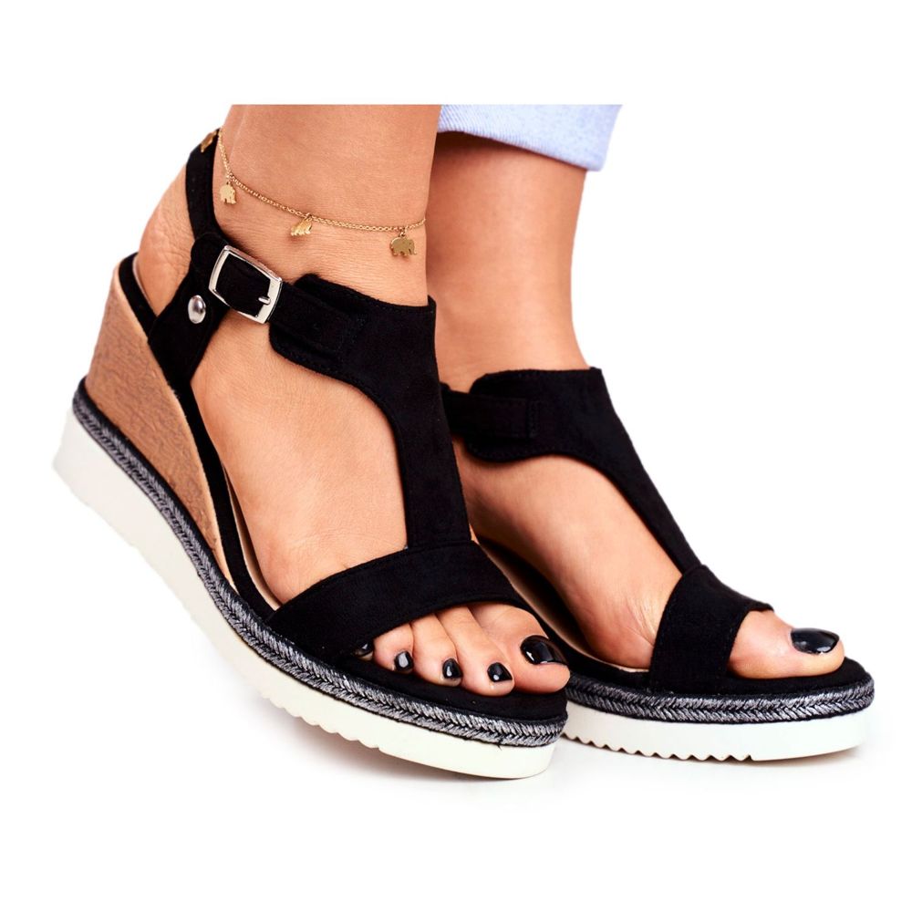 Detalhes: BUGO Sandálias femininas com cunha preta rosa preto