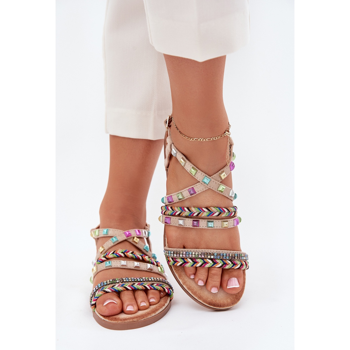 Inna marka Sandálias femininas com decoração e listras de tecido bege