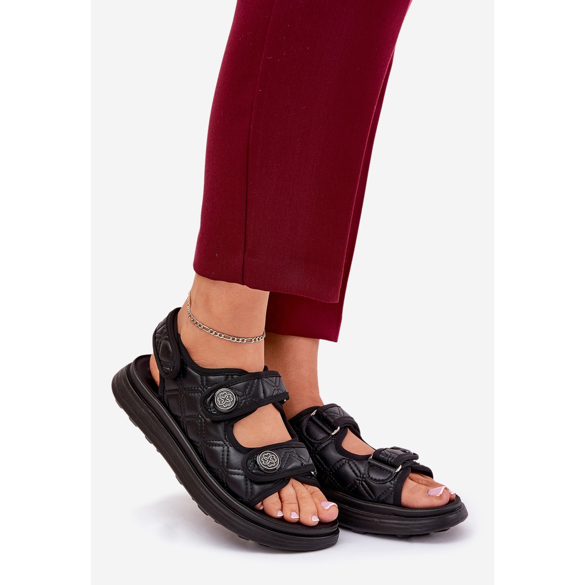 Inna marka Sandálias femininas com detalhes decorativos de velcro preto