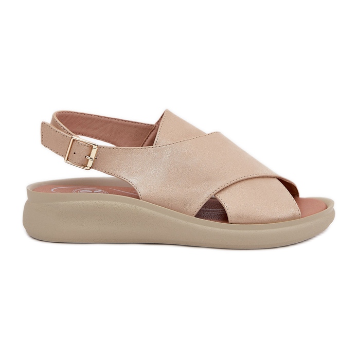 As sandálias Golden Jezzi em cor dourada são uma ótima opção para os dias de verão que combinam elegância e conforto. Feitos de couro ecológico de alta qualidade, eles não apenas fornecem uma aparência elegante, mas também o conforto do uso. Situado em uma cunha delicada com uma altura de 4 cm, eles garantem estabilidade ao caminhar, o que os torna um companheiro ideal em uma caminhada e durante as principais saídas.