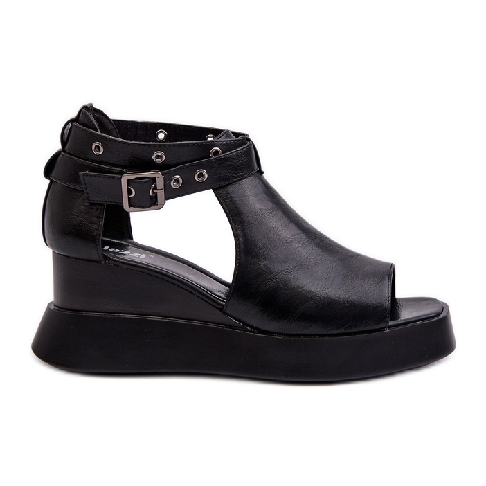 Jezzi Jezzi Sandálias femininas com plataforma e cunha em couro ecológico, preta Hloeli preto