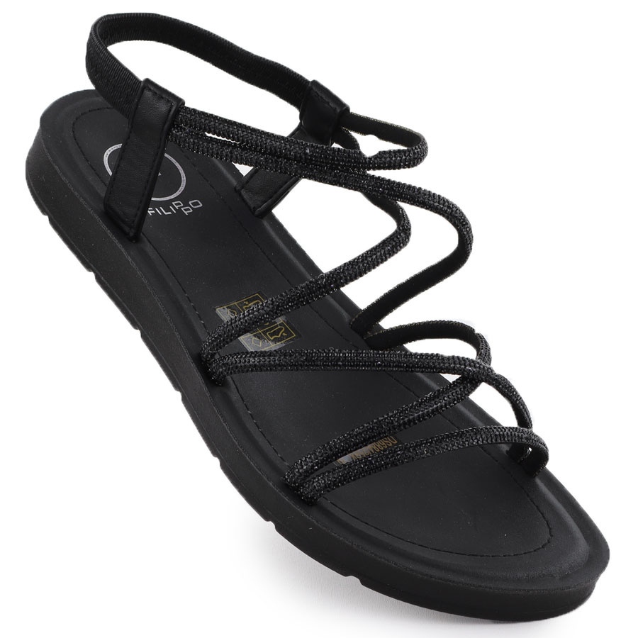 Filippo Sandálias femininas com romanos com zircões cúbicos pretos Filippo DS6884