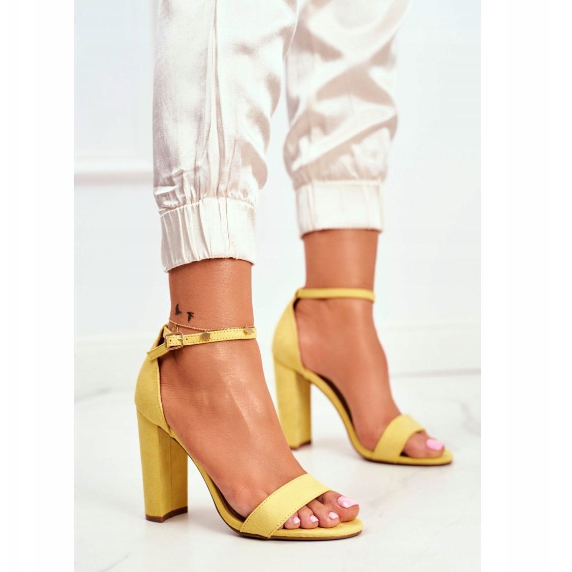 Detalhes: FW1 Sandálias femininas com salto em camurça amarela anastasie amarelo