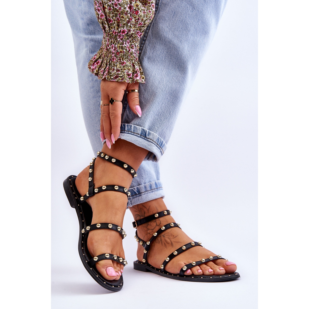 PG1 Sandálias Femininas Com Tachas Decorativas Pretas Dorothy – O seu Must-have para os dias de verão!