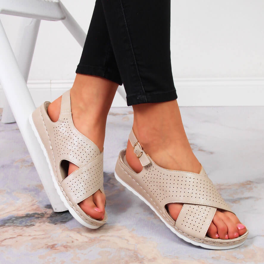 Detalhes: Sandálias femininas confortáveis, bege Vinceza