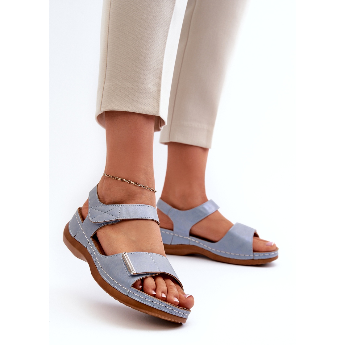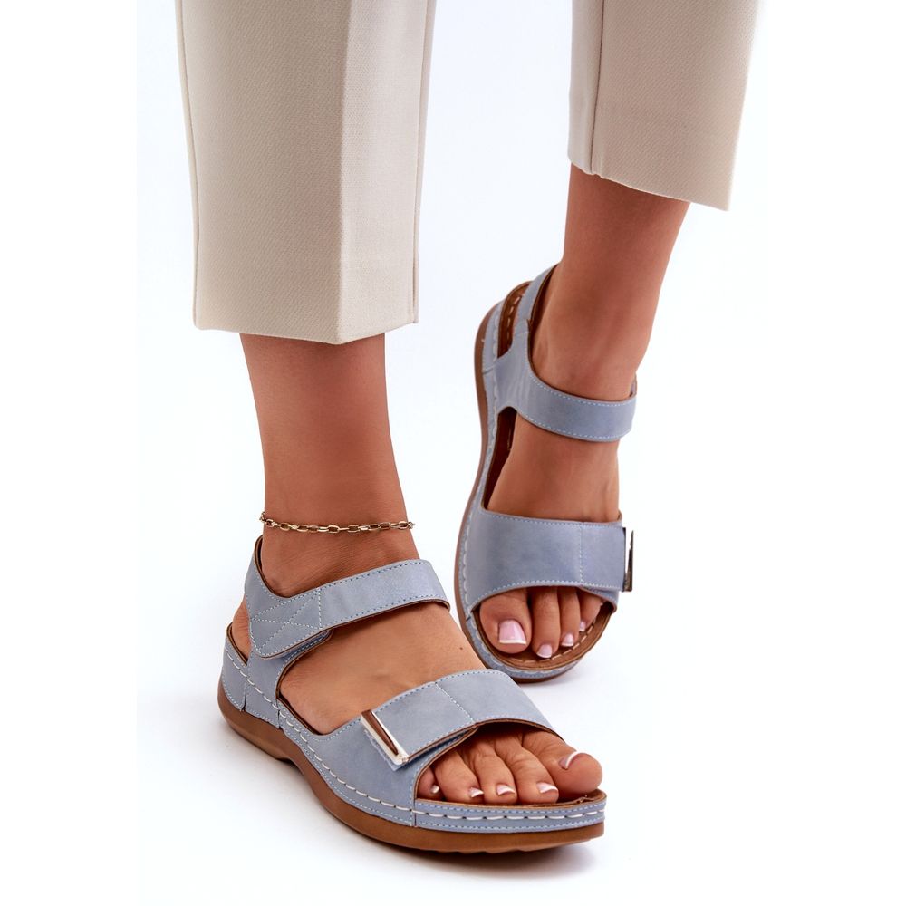 Descubra as sandálias perfeitas para os dias quentes de verão - modelos de sandálias femininas de velcro Evento Confortáveis na cor azul. Confeccionados em couro ecológico de alta qualidade, combinam o estilo moderno com o máximo conforto. O seu design simples e clássico faz com que se adaptem perfeitamente a uma variedade de estilos, do quotidiano ao mais elegante.