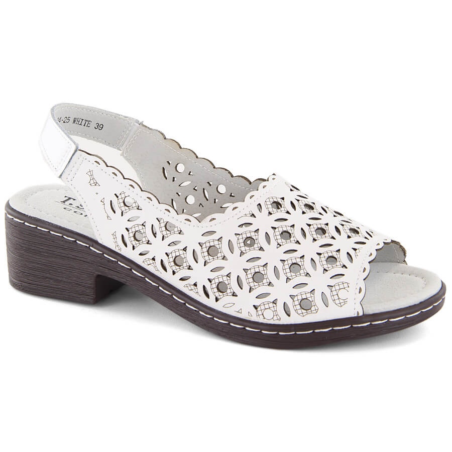 T.Sokolski Sandálias femininas confortáveis de couro branco de salto alto da T.Sokolski