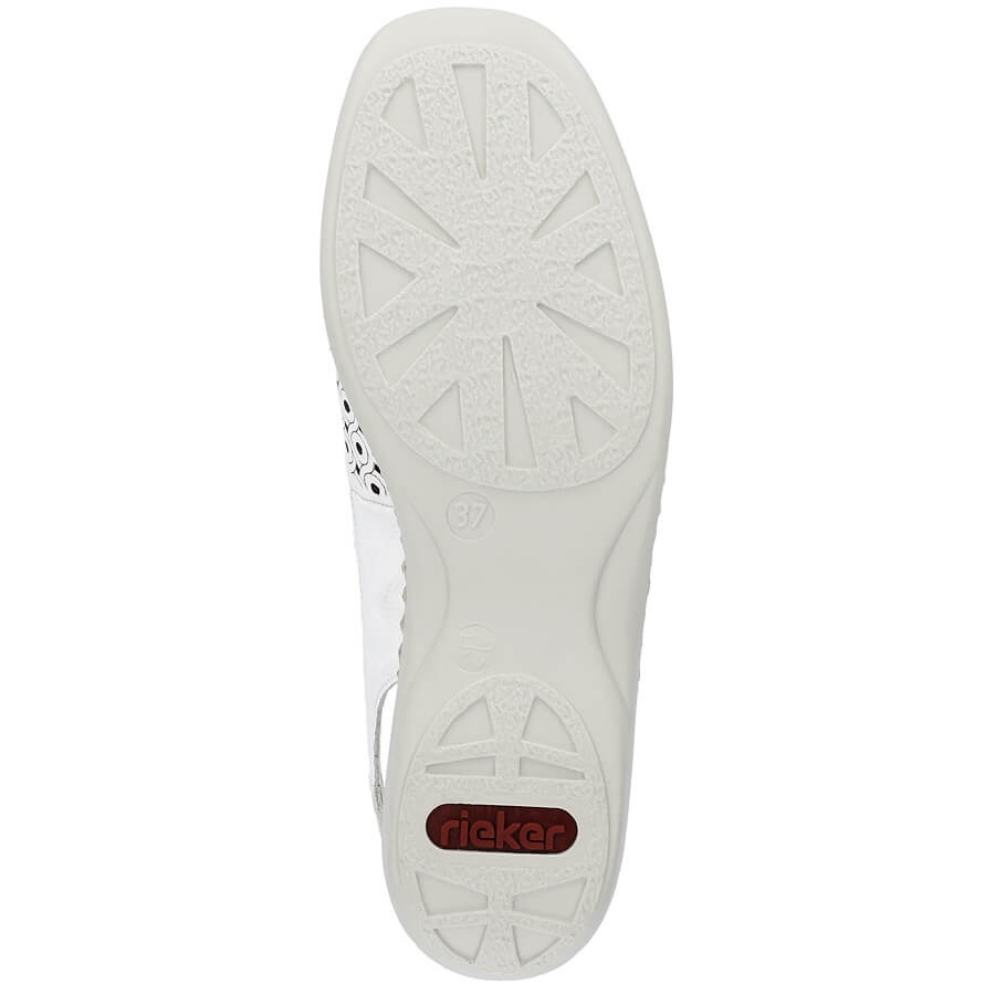 Detalhes: Sandálias femininas confortáveis de couro com aberturas completas, brancas Rieker 41350-80 branco