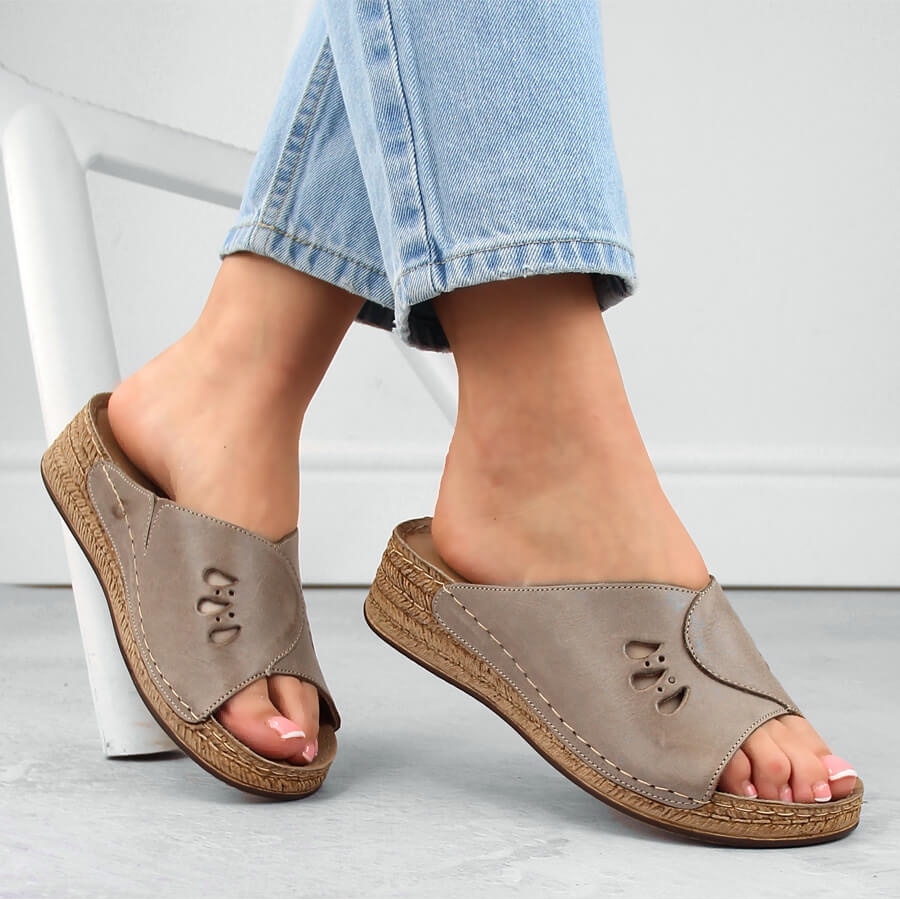 - Modelo: Sandálias femininas confortáveis de couro com cunha