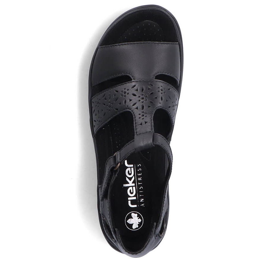 Detalhes: Sandálias femininas confortáveis de couro com velcro, pretas Rieker 64865-01 preto
