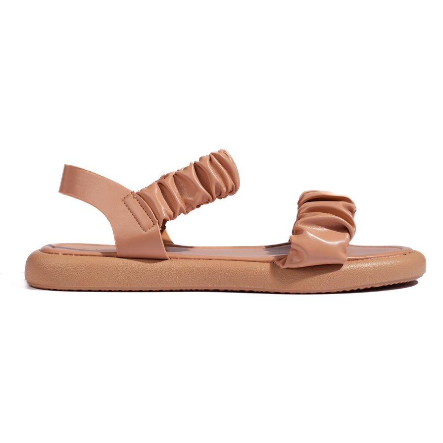 A cor marrom lhes dá elegância e os torna perfeitamente misturados com várias estilizações - tanto com vestidos de verão quanto calças casuais. A inserção de couro orgânica cuida do conforto dos pés, e a sola de plástico suave garante a estabilidade a cada passo.