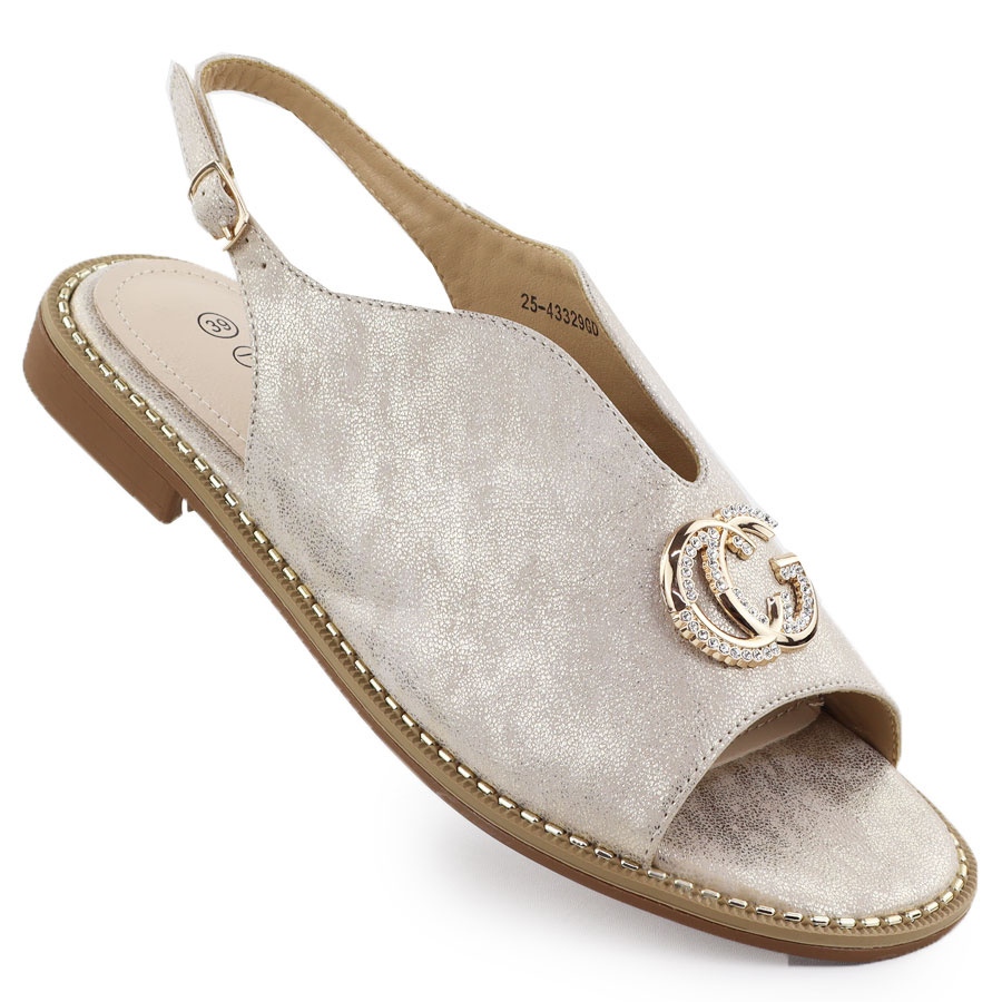 Detalhes: Sandálias femininas construídas com um ornamento de Golden 43329 Potocki dourado