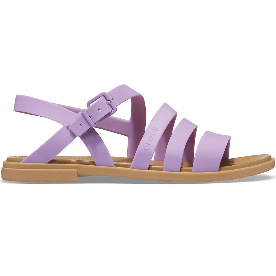 Perfeito para os dias de verão - Sandálias de tulum leves, confortáveis e elegantes em roxo da moda. O corte sutil, assimétrico, com tiras Matlite ™ e um fixador ajustável ao redor do tornozelo combina um personagem esportivo com leveza feminina. A sola plana com a tecnologia Crocs Comfort ™ oferece amortecimento e conforto todos os dias - de caminhadas pela cidade até descansar na praia.