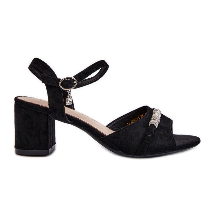 Detalhes: Vinceza Sandálias femininas de camurça ecológica com salto alto e enfeites, Narhi preta preto