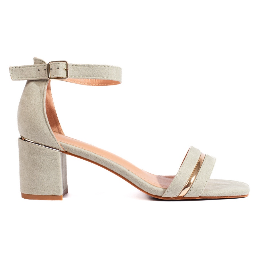 As sandálias estão equipadas com o nariz aberto e uma fivela, o que oferece não apenas uma aparência atraente, mas também um ajuste confortável. Seu calcanhar de 7 centímetros no estilo de um post adiciona classe e enfatiza a figura, e a sola suave feita de plástico garante a estabilidade a cada passo.