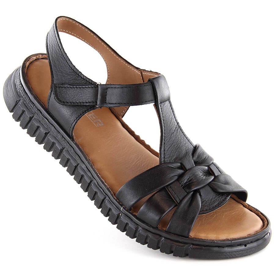 Detalhes: Sandálias femininas de couro com velcro, pretas Artiker 54C0812 preto