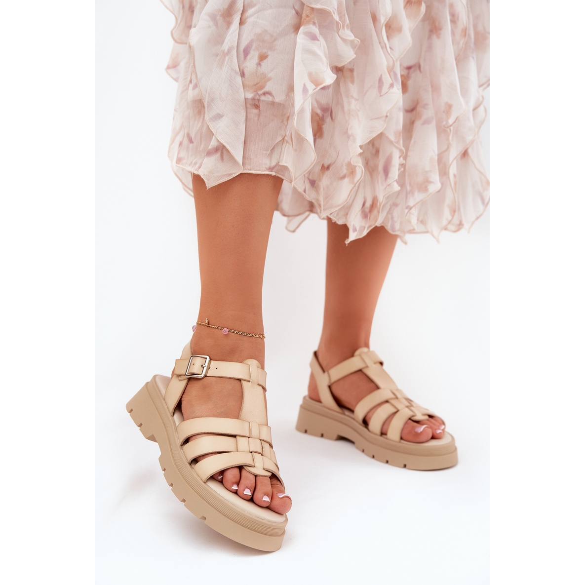 Descubra a empresa perfeita para os dias de verão - sandálias femininas de couro Eco na plataforma em uma sombra bege. Essas sandálias elegantes e confortáveis são uma combinação perfeita de estilo e conforto, o que os torna um complemento perfeito para muitas estilizações de verão.