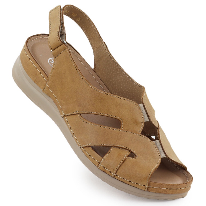 Conheça as sandálias femininas de couro na cunha Helios 144 em elegante marrom claro, que é uma combinação perfeita de estilo e conforto. Essas sandálias exclusivas, produzidas na Polônia, foram projetadas para usar conforto, graças às quais são perfeitas para as estilizações diárias.
