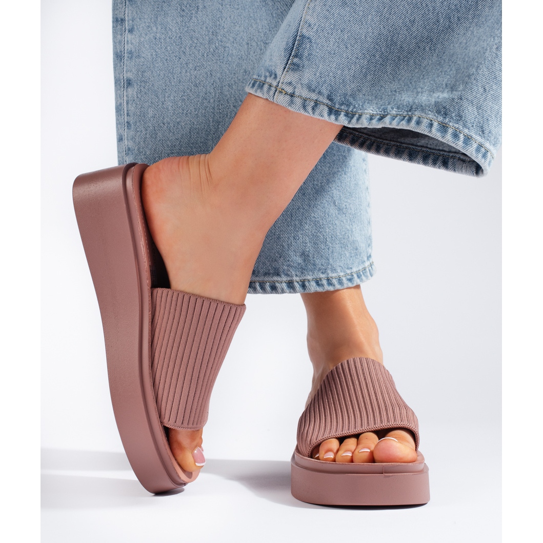 Feito de material têxtil de alta qualidade, os flip -flops garantem durabilidade e conforto do desgaste. A imitação da pele dentro do sapato garante a suavidade do pé, o salto aberto e o corte inserido fazem de colocá -los em um verdadeiro prazer. A cunha de 5 cm de alta acrescenta não apenas uma altura delicada, mas também a estabilidade, o que torna esses chinelos uma escolha ideal para longas caminhadas ou reuniões casuais com os amigos.
