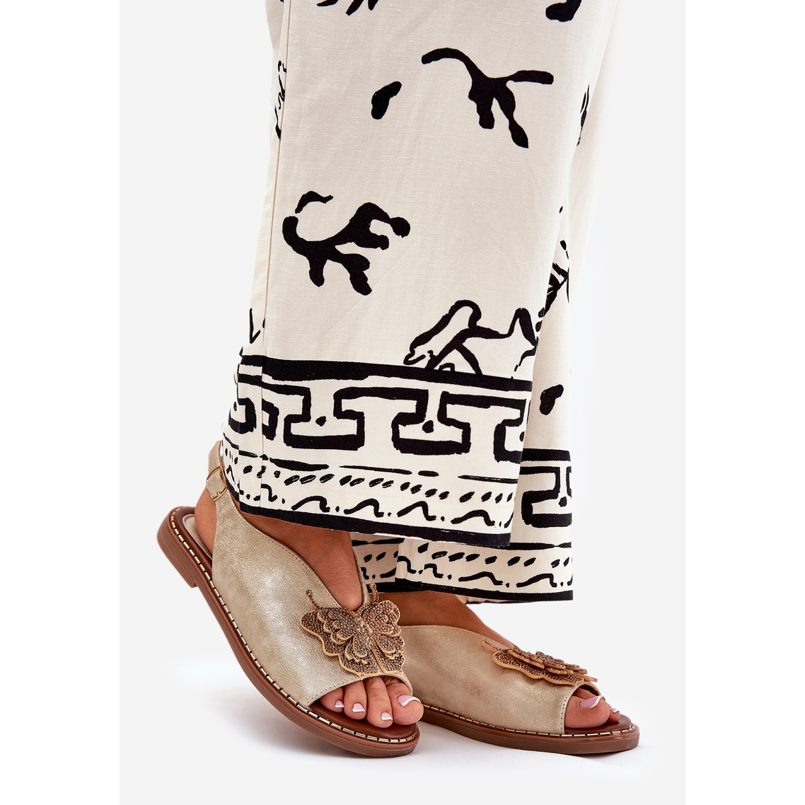 Detalhes: Jezzi Sandálias femininas de grama plana com ornamento dourado