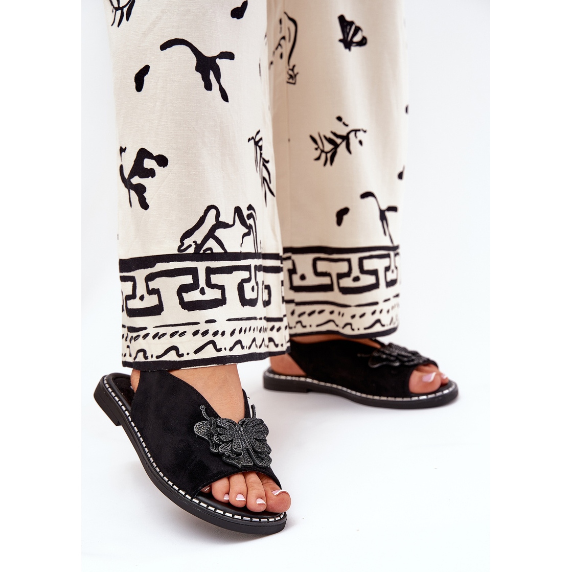 Descubra a elegância e o conforto graças aos saltos planos femininos da marca Jezzi. Essas sandálias pretas elegantes são feitas de camurça ecológica de alta qualidade, o que as torna não apenas estéticas, mas também ecológicas. Seu caráter único é enfatizado pela decoração da frente, que acrescenta a originalidade a eles e os torna ideais para várias ocasiões, da noite a celebrações elegantes.