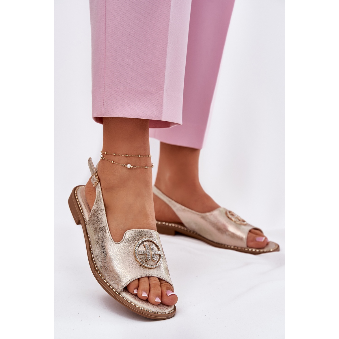 S.Barski S.Barski Sandálias femininas de salto plano com um ornamento S. Barski KV51-002 Gold dourado