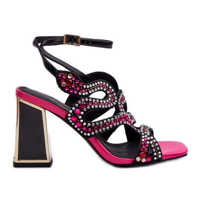 Projetados para conforto, essas sandálias são incorporadas em um salto estável na forma de um poste de 9 cm de altura, que não apenas alcança opticamente as pernas, mas também oferece excelente suporte durante a caminhada. A alça ajustável com a fivela permite que você se encaixe perfeitamente no pé, e a inserção macia e de couro garante conforto o dia todo.