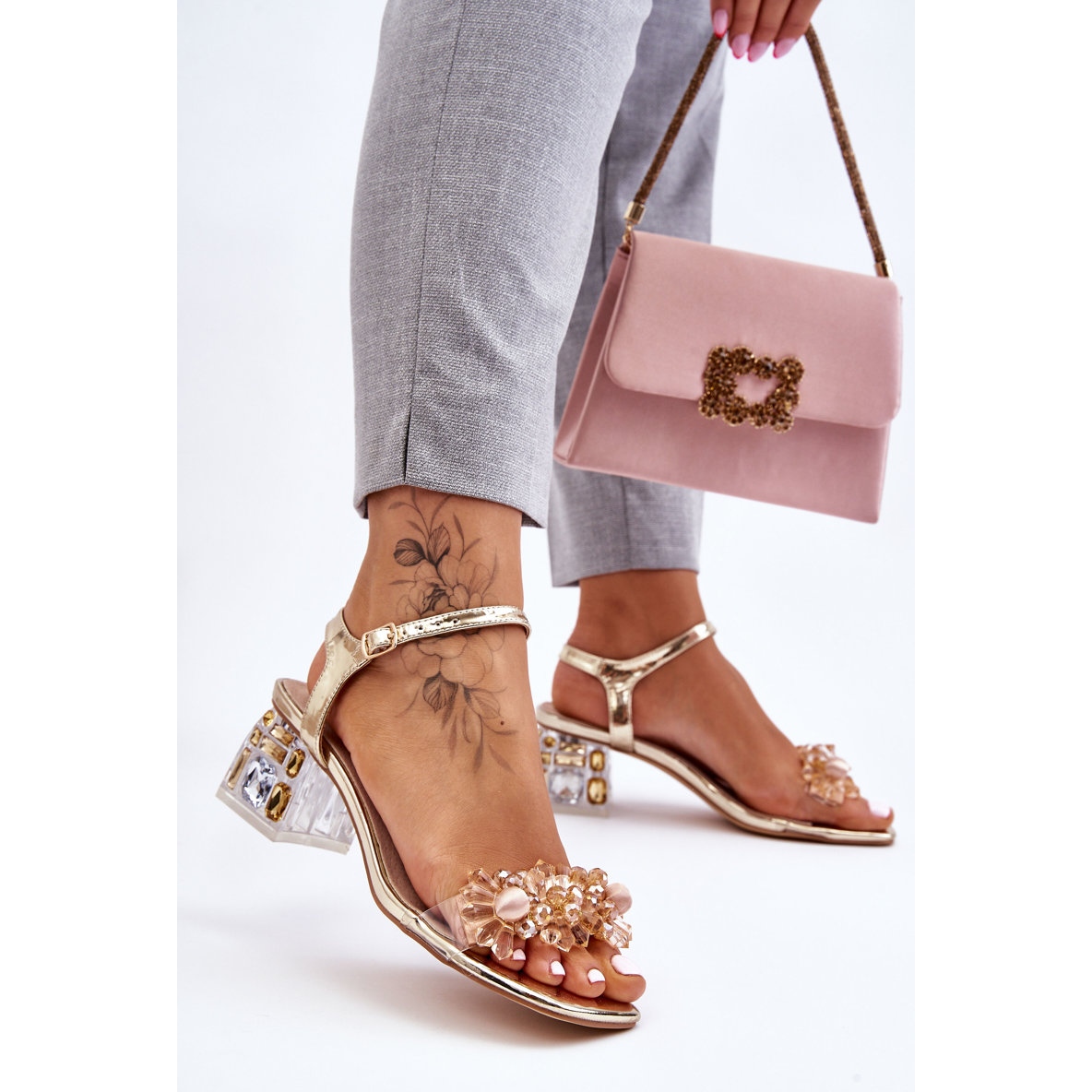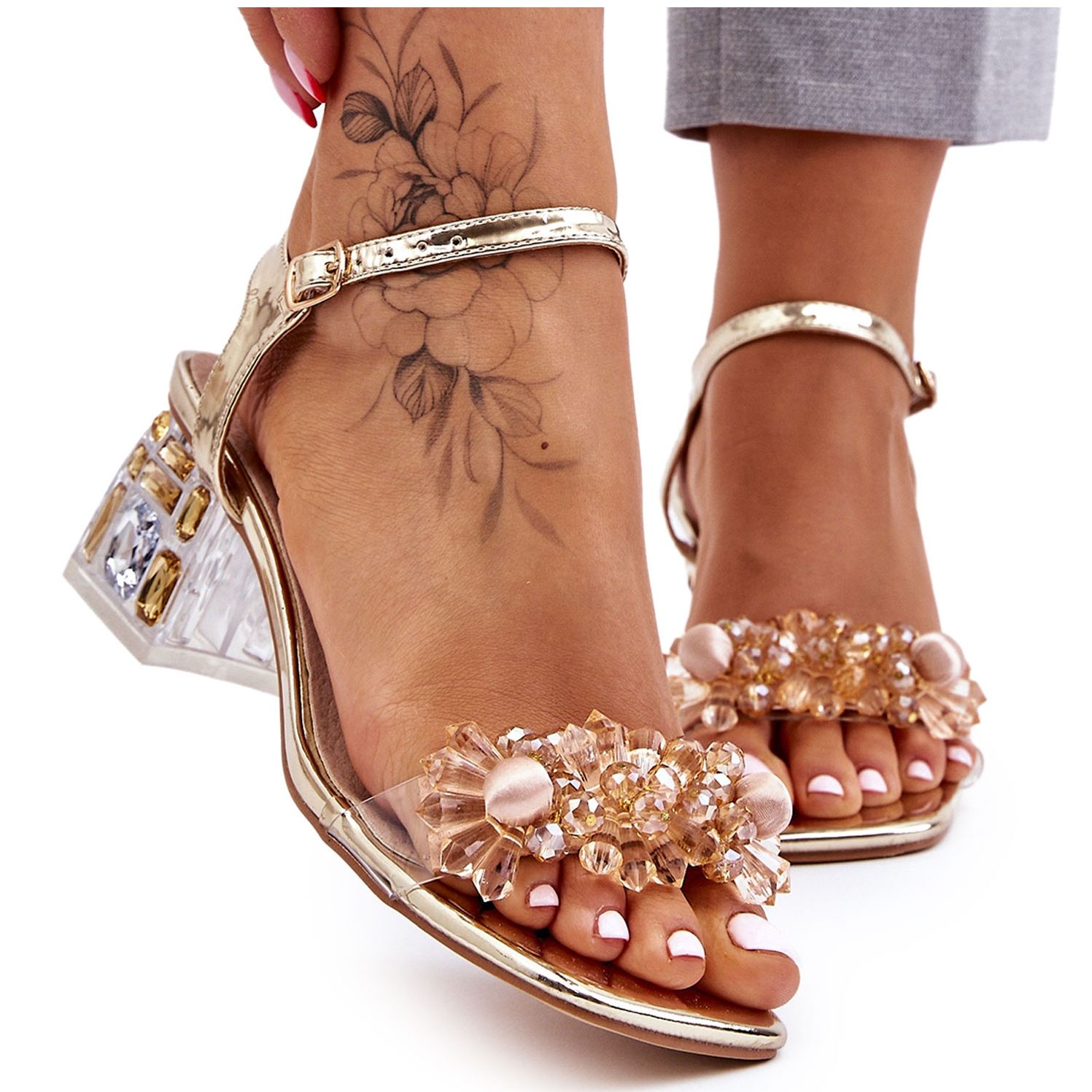 Sandálias Femininas de Salto Baixo S.Barski com Decorações Golden Benicio é uma excelente opção para mulheres que valorizam elegância e conforto. Estas sandálias exclusivas com salto baixo e estável garantem não apenas conforto de uso, mas também um visual moderno. As tiras decorativas com miçangas conferem-lhes um carácter único, tornando-os perfeitos para diversas celebrações e reuniões.