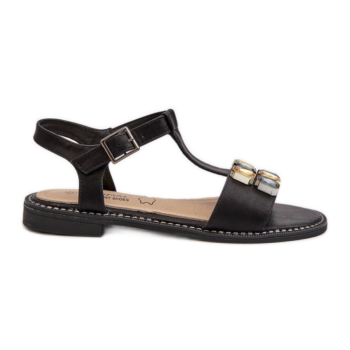 Sandálias femininas elegantes S. Barski KV27-030 em preto é a escolha perfeita para mulheres que desejam combinar estilo com conforto. Essas sandálias clássicas são distinguidas por decorações sutis, como strass e strass, que lhes dão um charme especial, combinando perfeitamente com criações de verão.