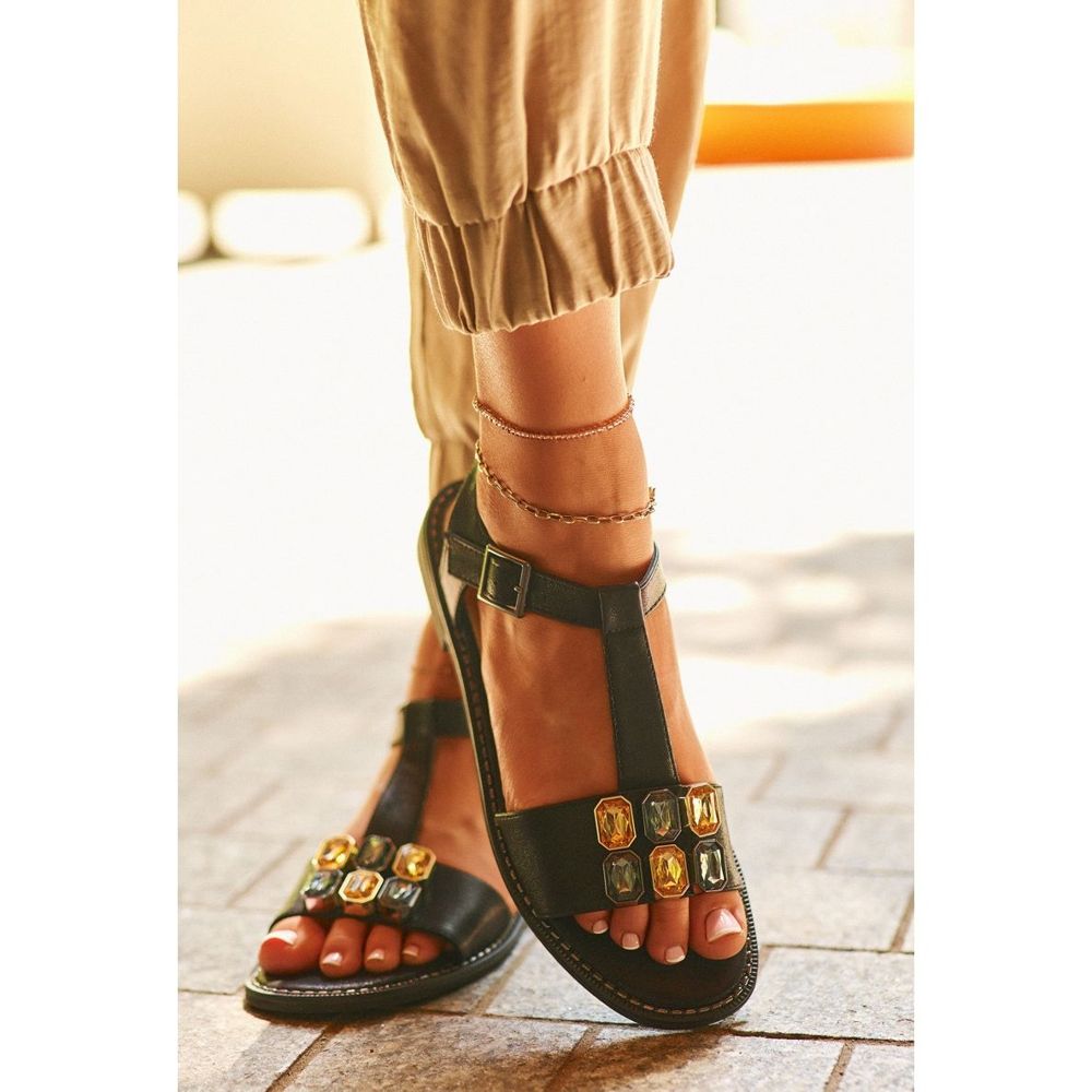 Detalhes: Sandálias femininas elegantes com detalhes decorativos S.Barski KV27-030 pretas preto
