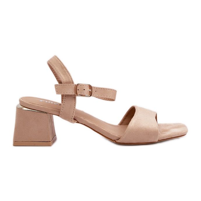 Inna marka Sandálias femininas em bloco confeccionadas em camurça ecológica bege Leisha