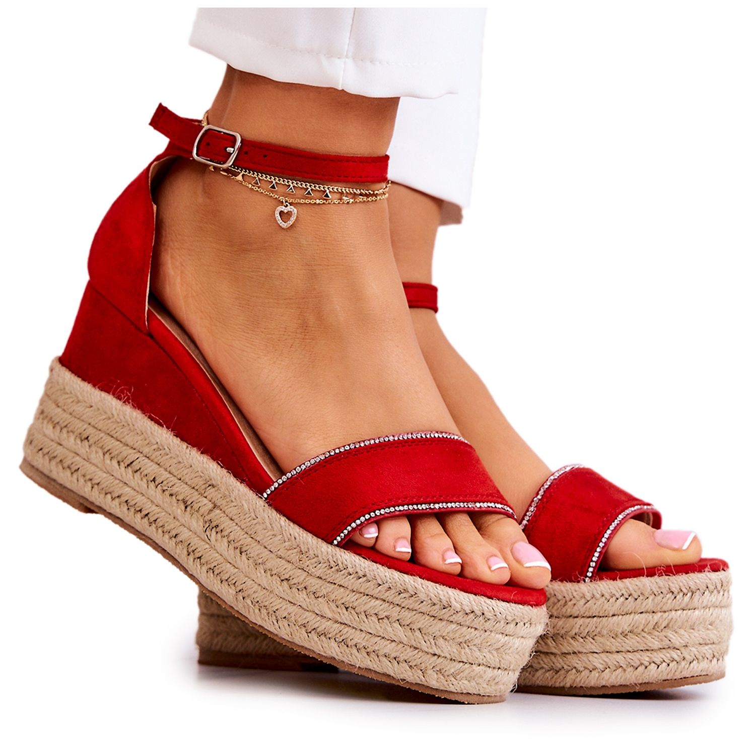 FW1 FW1 Sandálias femininas em cunha com zircônia cúbica vermelha Linette vermelho