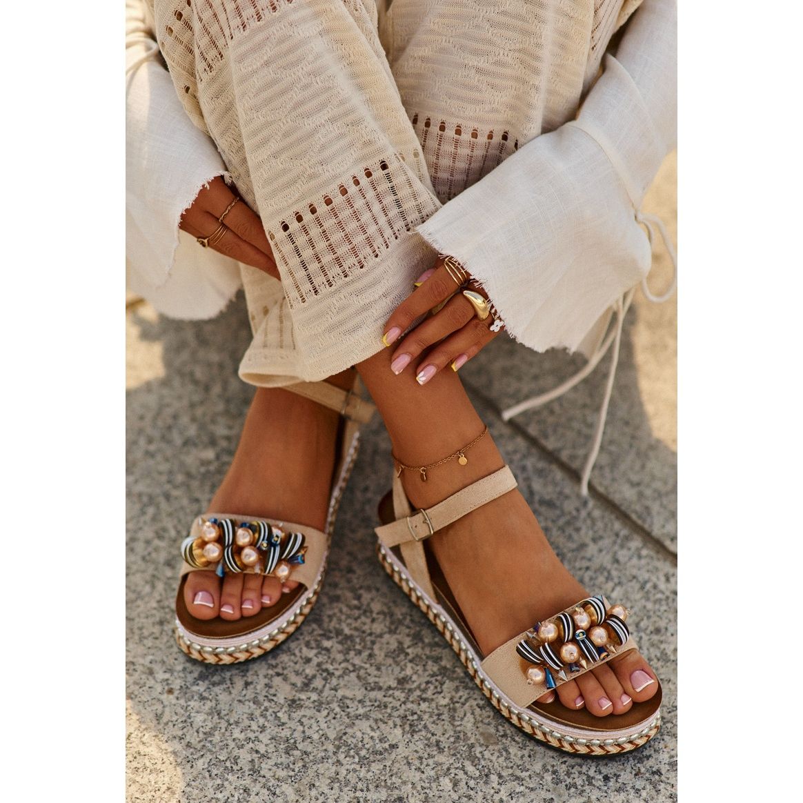 Detalhes: Sandálias Femininas Em Cunha E Plataforma Com Decorações S.Barski HY056 Bege
