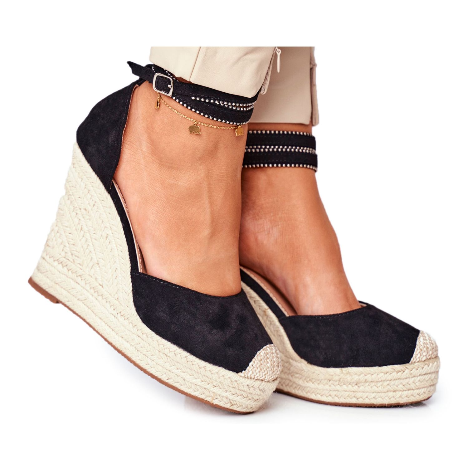 Descubra estilo e conforto com as sandálias femininas de cunha Black Linen Canterola da marca FB2! Estas alpercatas exclusivas são a escolha perfeita para os dias quentes de verão. Perfeitamente decorados com uma tira amarrada no tornozelo, eles não só enfatizam a elegância, mas também proporcionam estabilidade ao caminhar.