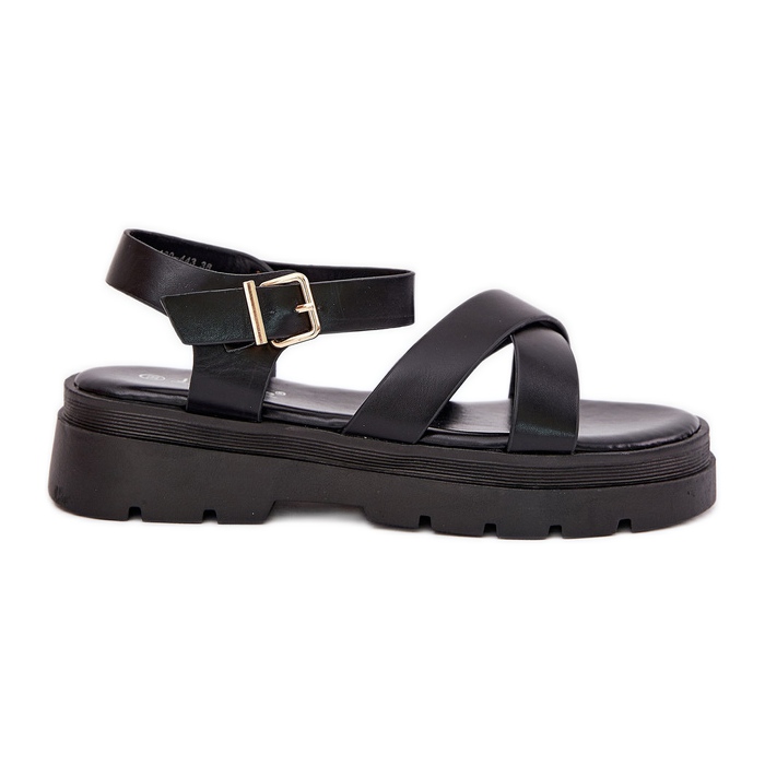 Apresentamos sandálias femininas elegantes na plataforma, o que se deleita com seu estilo e funcionalidade. Feito de couro ecológico de alta qualidade, essas sandálias pretas são uma proposta ideal para dias quentes. Seu corte minimalista com duas tiras entrelaçadas na frente lhes dá um personagem único, que faz parte das últimas tendências.