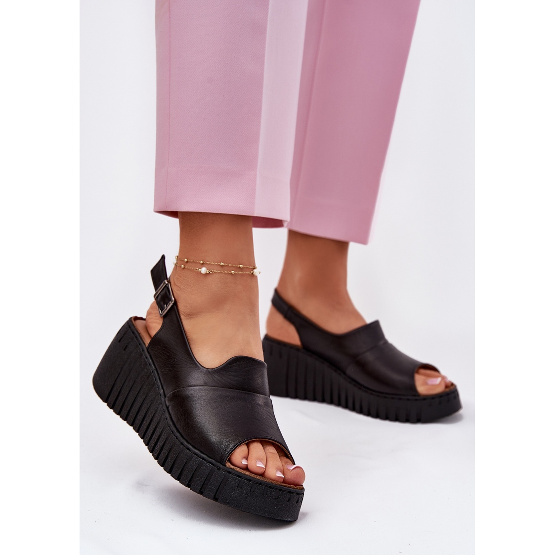 As sandálias femininas feitas de couro natural na cunha de arte 54C0791 em preto é a escolha perfeita para mulheres que valorizam a elegância e o conforto nas estilizações de verão. Feitos de couro natural de alta qualidade, essas sandálias se deleitam não apenas com a estética, mas também com a funcionalidade.