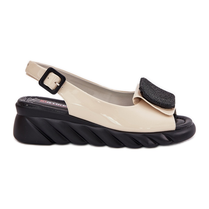 Apresentamos sandálias femininas envernizadas em couro com uma cunha com decoração Artiker 56C1567 em uma cor bege espetacular. Essas sandálias elegantes são uma ótima opção para os dias de verão, combinando estilo com conforto.