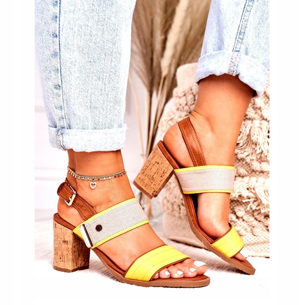 Apresentamos sandálias Jezzi confortáveis e elegantes com salto de cortiça 20SD35-1826 num tom de amarelo da moda. Estes sapatos femininos são a escolha perfeita para mulheres que procuram uma combinação de elegância e conforto. Fabricados em couro ecológico de alta qualidade, garantem durabilidade e aparência estética.